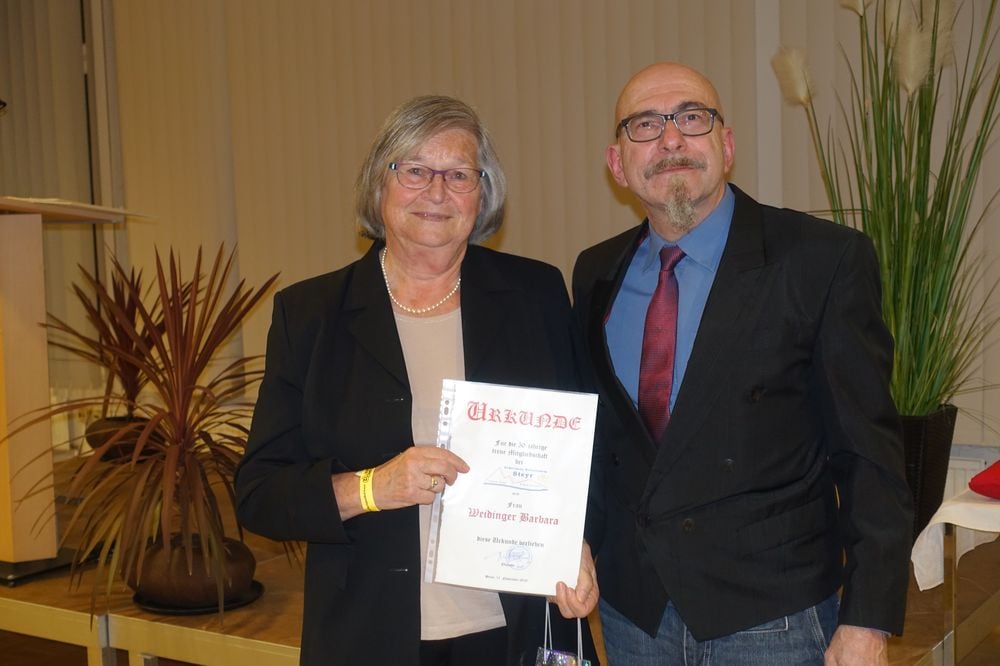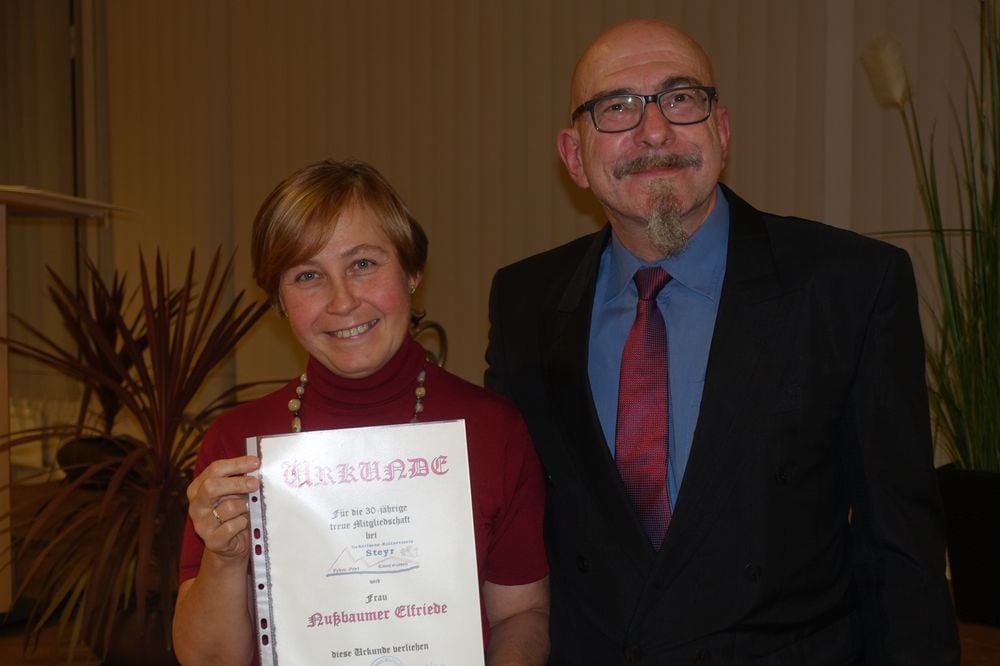 Nach der Ansprache des Obmannes und der Ehrengäste wurden die langjährigen Mitglieder mit Urkunden und Anstecknadeln geehrt!
