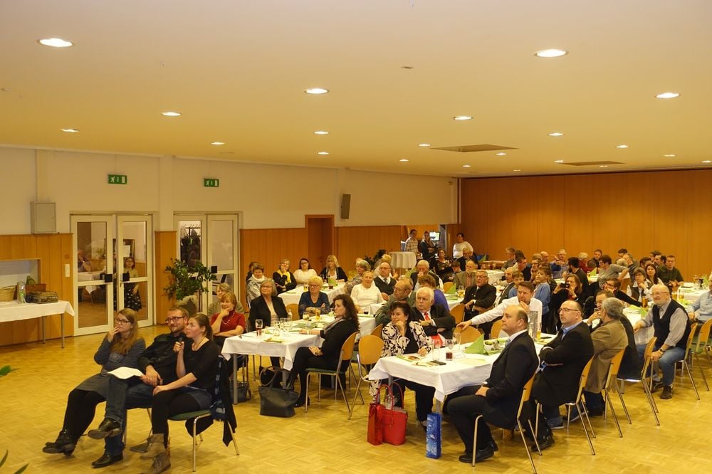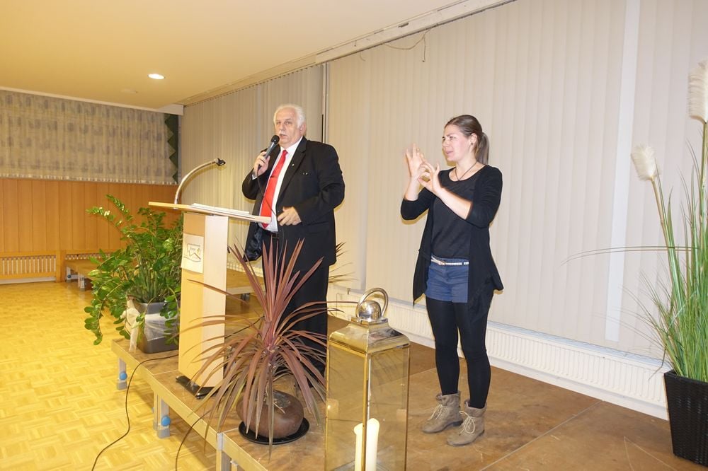 Mit Fr. Soziallandesrätin Gerstorfer Birgit, Vizebürgermeister der Stadt Steyr Hauser Willi, Gehörlosenverband OÖ-Leiter Patzak Klaus, die Obmänner Glechner Reinhard (GKV-Salzkammergut), Kienast Anton (Obm. Stv. LGKSV), Mayr Herbert (MGKSV) und Zellinger Stefan (IGKV) sowie über 130 Besucher fanden sich hier bei der Feier im Saal ein.