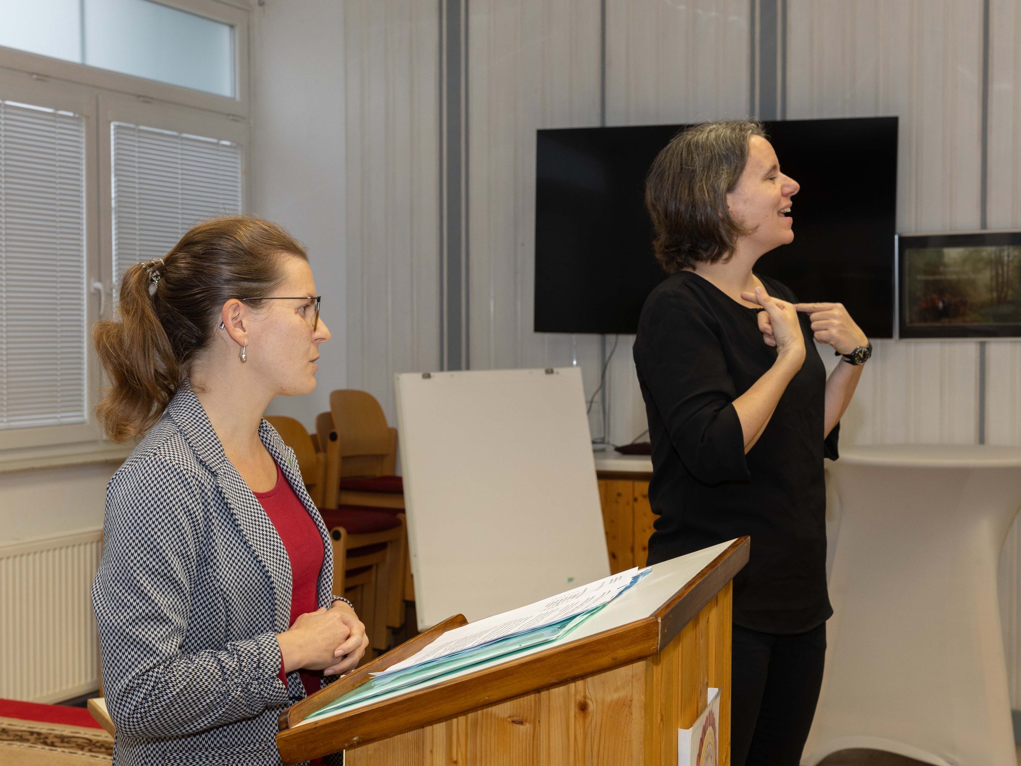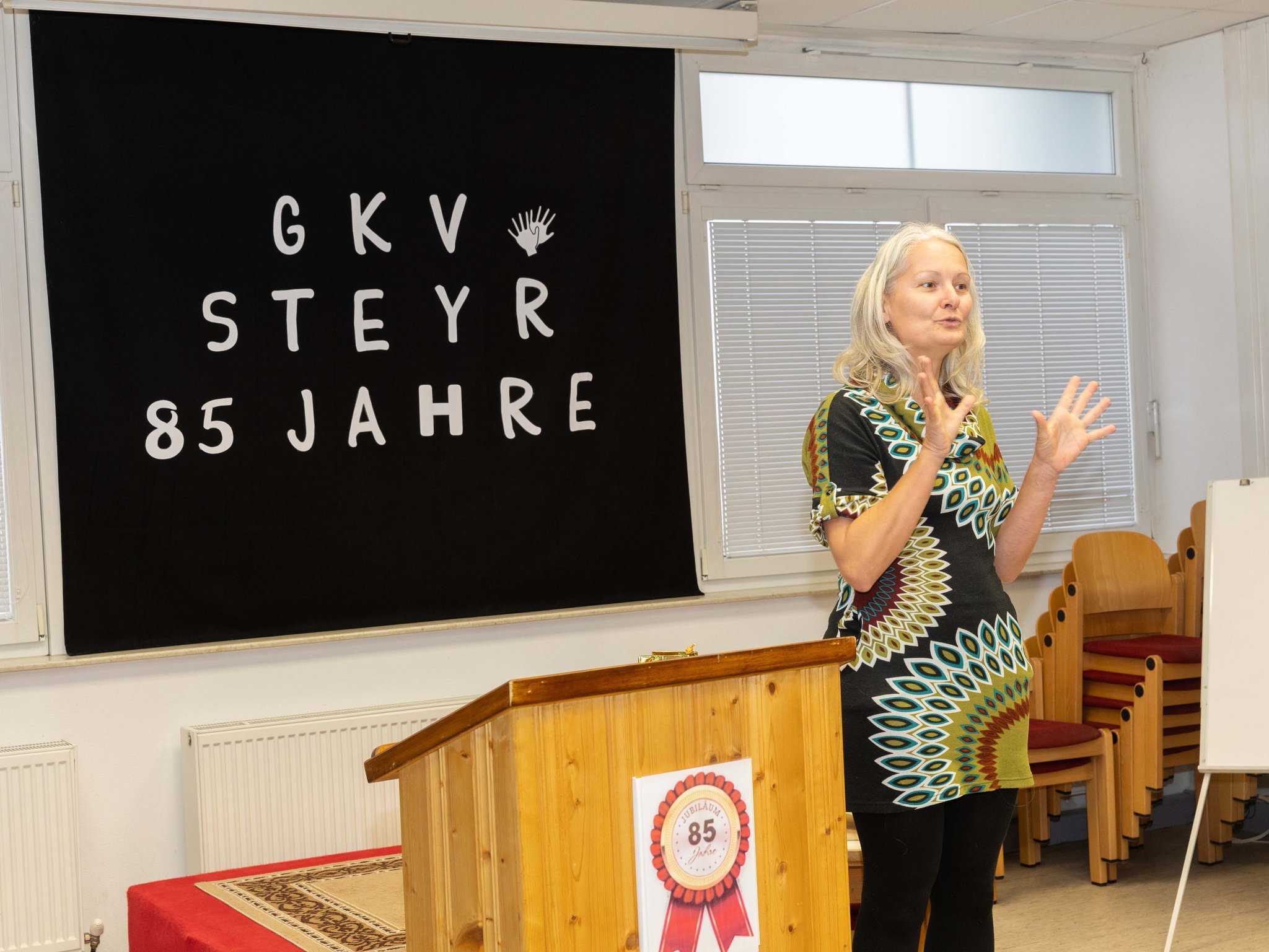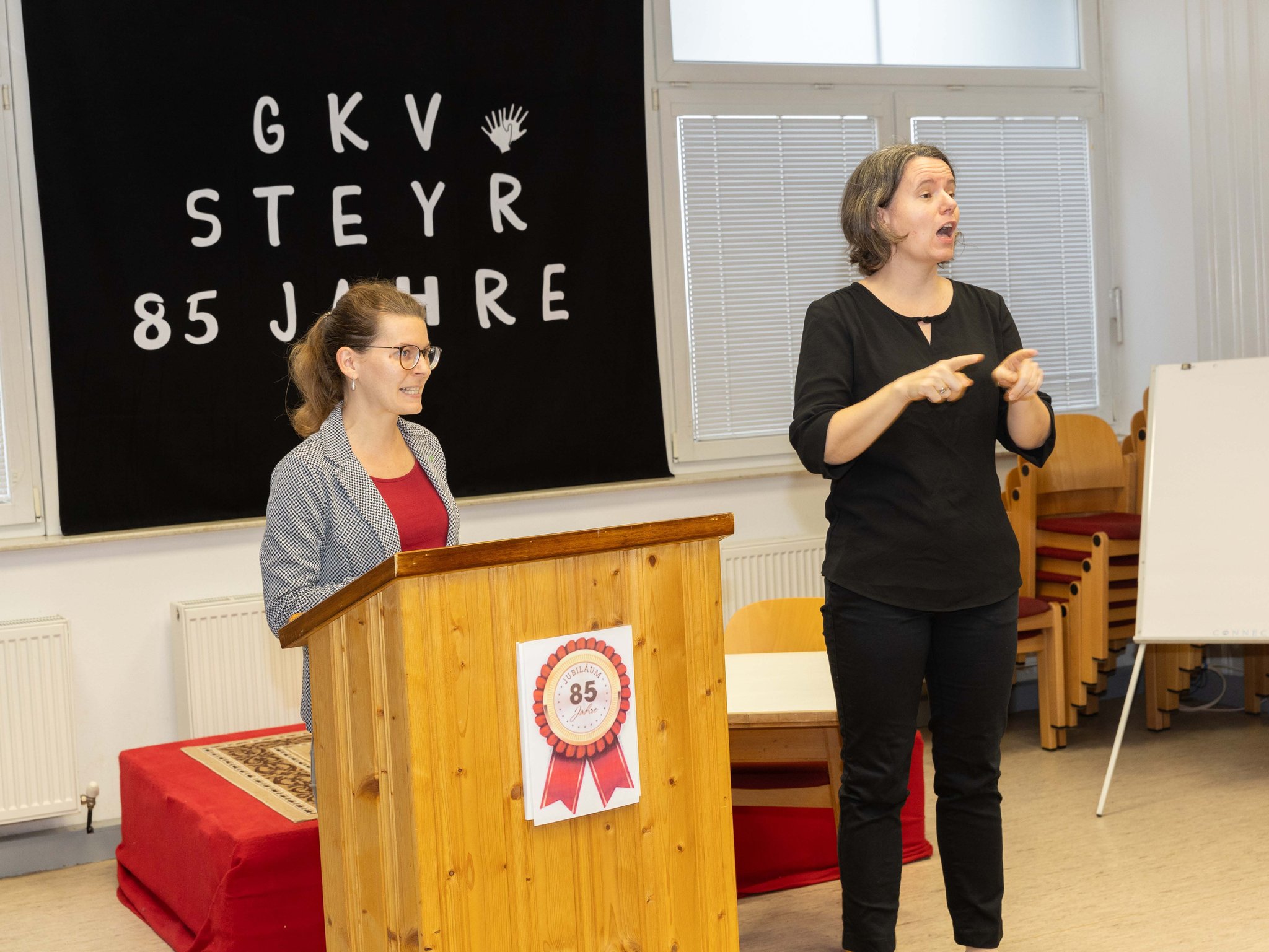 Dolmetscherin Mocnik Barbara übersetzte für die Vize-Bgmst. die Gebärdensprache.