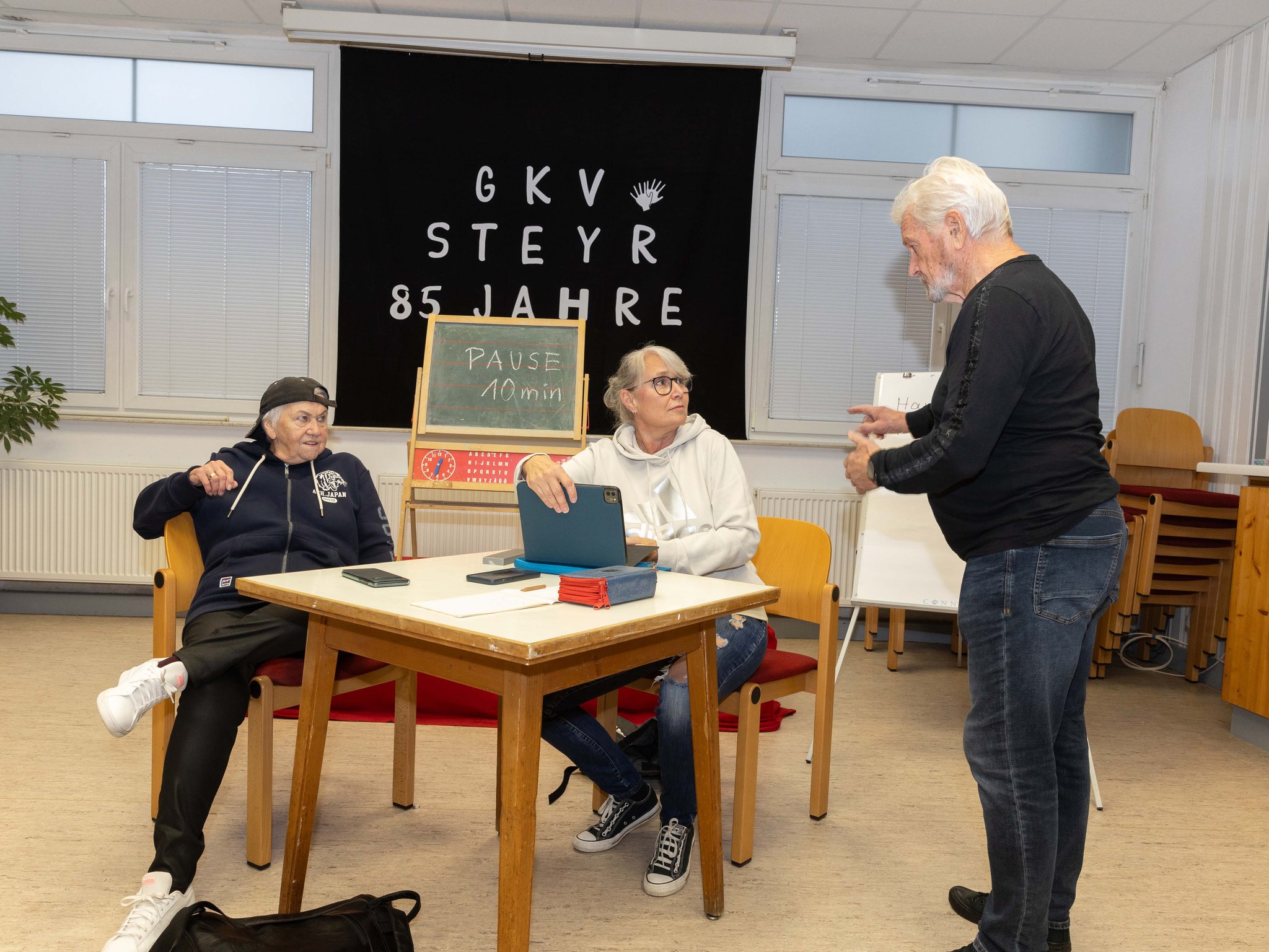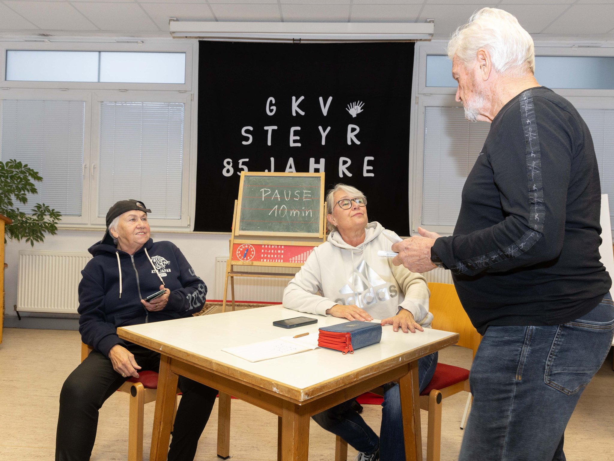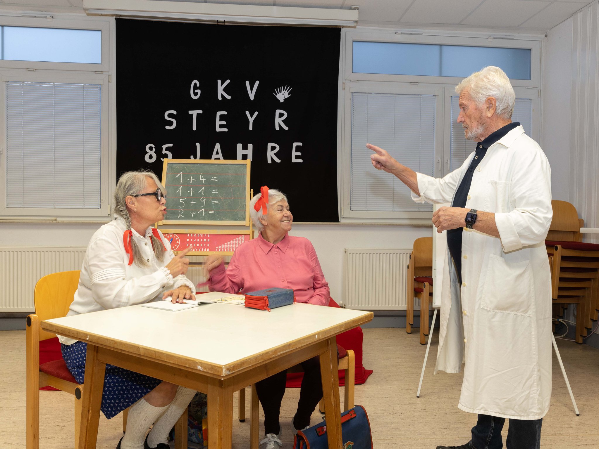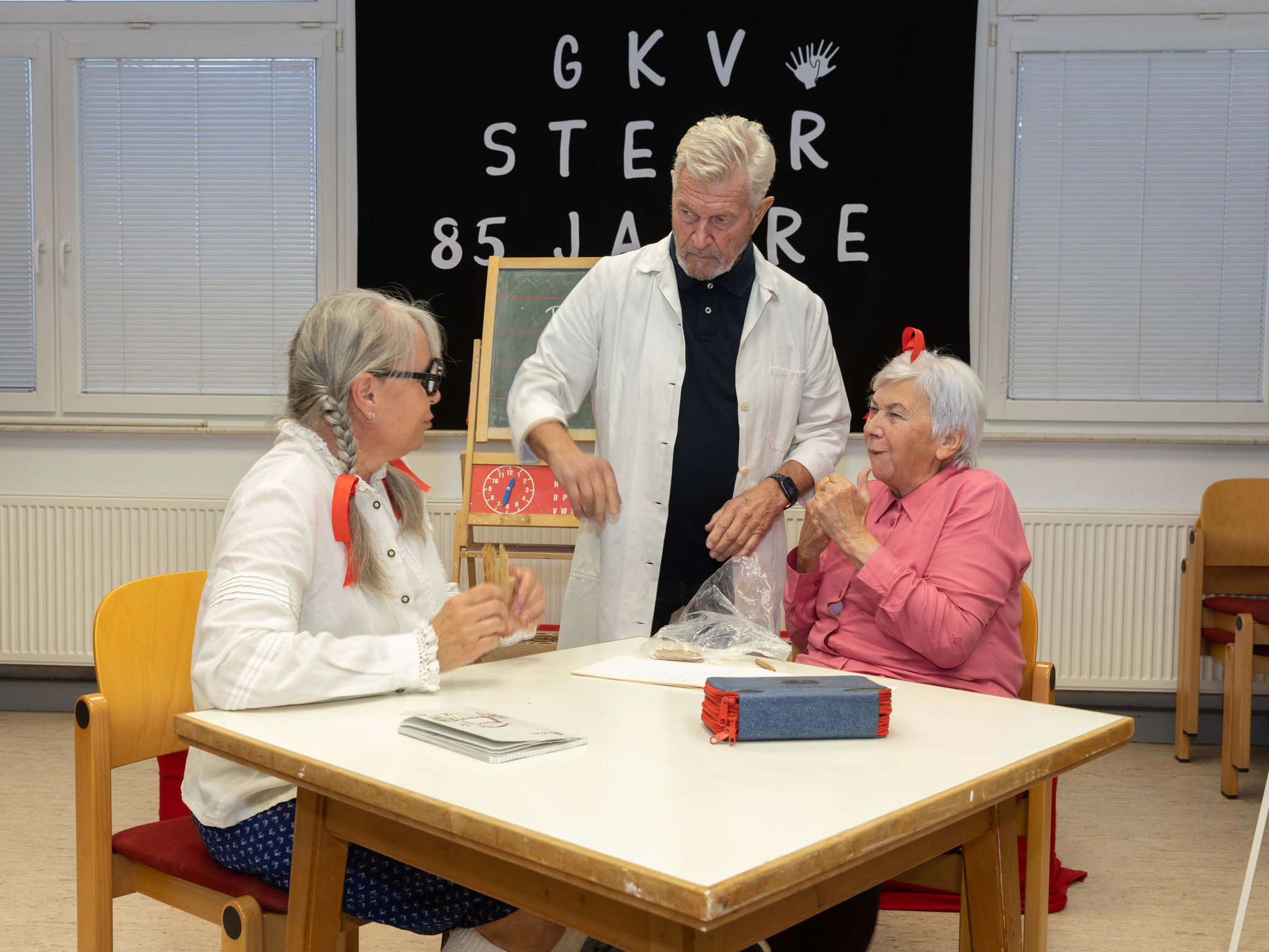 Nachdem alle Ehrengäste die Glückwünsche und Geschenke an den Verein übergaben, spielten die Theatergruppe "Manus Deaf" 2 lustige Sketches über die Schulzeit von damals und jetzt.