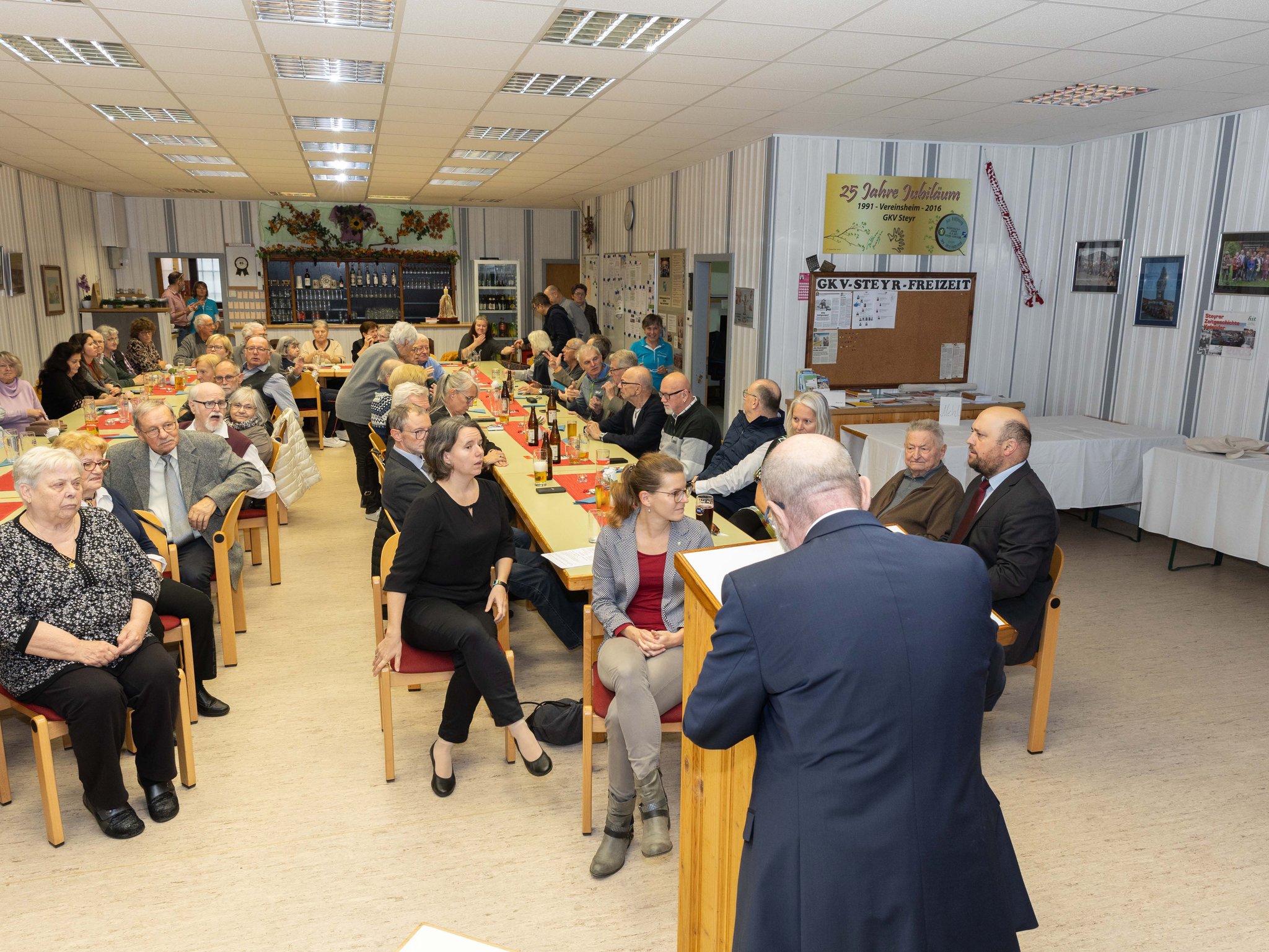 In Anwesenheit der Vize-Bürgermeisterin der Stadt Steyr Fr.BA MA Demmelmayr Anna Maria begann die Ansprache pünktlich um 14.00 Uhr. Nach der Begrüßung sprach Obmann Nußbaumer über die Geschichte des Vereines und würdigte auch an die ehemaligen Mitarbeiter beim Aufbau des neuen Lokals.