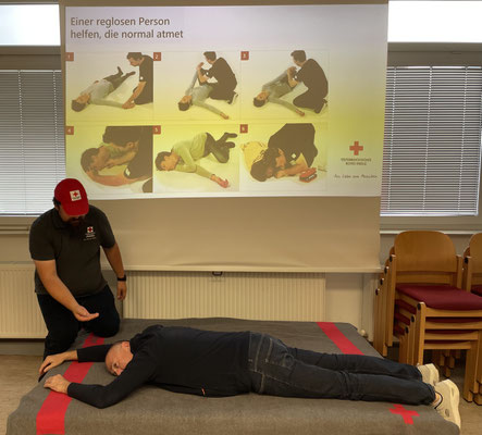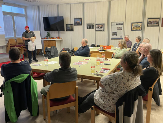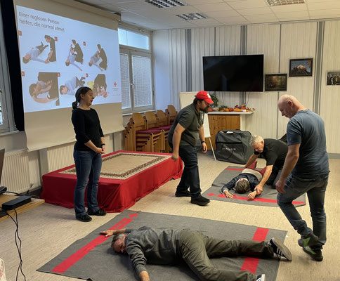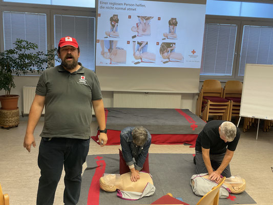 Der Kurs begann pünktlich um 16 Uhr am Freitag, dem 3. Oktober mit Kursleiter Sebastian Paul vom Roten Kreuz. Er stellte den Ablauf des Kurses vor und vermittelte zunächst die wichtigsten Grundlagen der Erste Hilfe. Themen waren unter anderem: