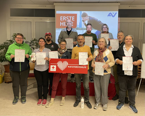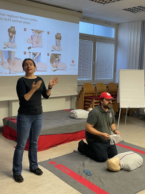 Der GKV Steyr stellte die Räumlichkeiten für einen Erste-Hilfe-Kurs zu Verfügung. Ingesamt nahmen 16 Teilnehmer/innen, davon 9 gehörlose Personen und 2 hörende Menschen daran teil. Der Kursleiter wurde von 2 Gebärdensprachdolmetscherinnen und 2 Dolmetscherinnen in Ausbildung unterstützt.