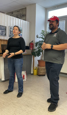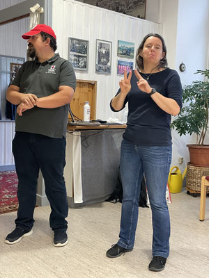 Alle Teilnehmenden konnten die Techniken in Praxis ausprobieren, was für viel Freude und eine aktive Lernatmosphäre sorgte. Die zwei Gebärdensprachdolmetscherinnen übersetzten professionell in Gebärdensprache. Der erste Kurstag endete um 20 Uhr und die Teilnehmenden gingen motiviert nach Hause - in Vorfreude auf den nächste Kurstag am Freitag, 10.10.2025 um 16-20 Uhr.