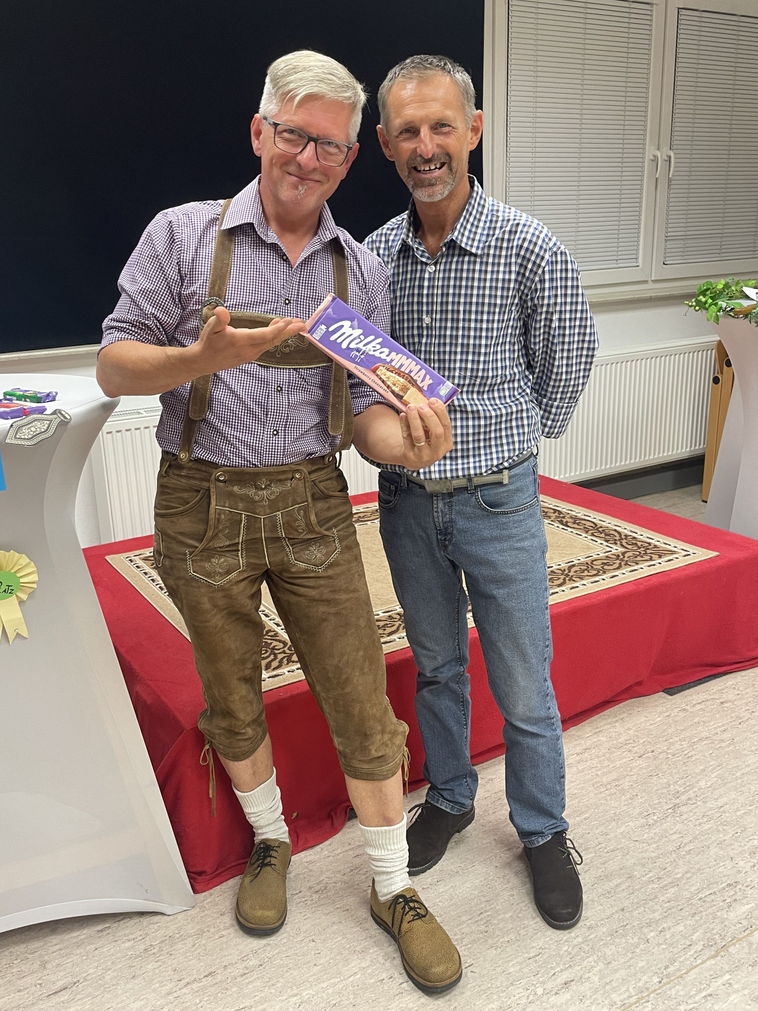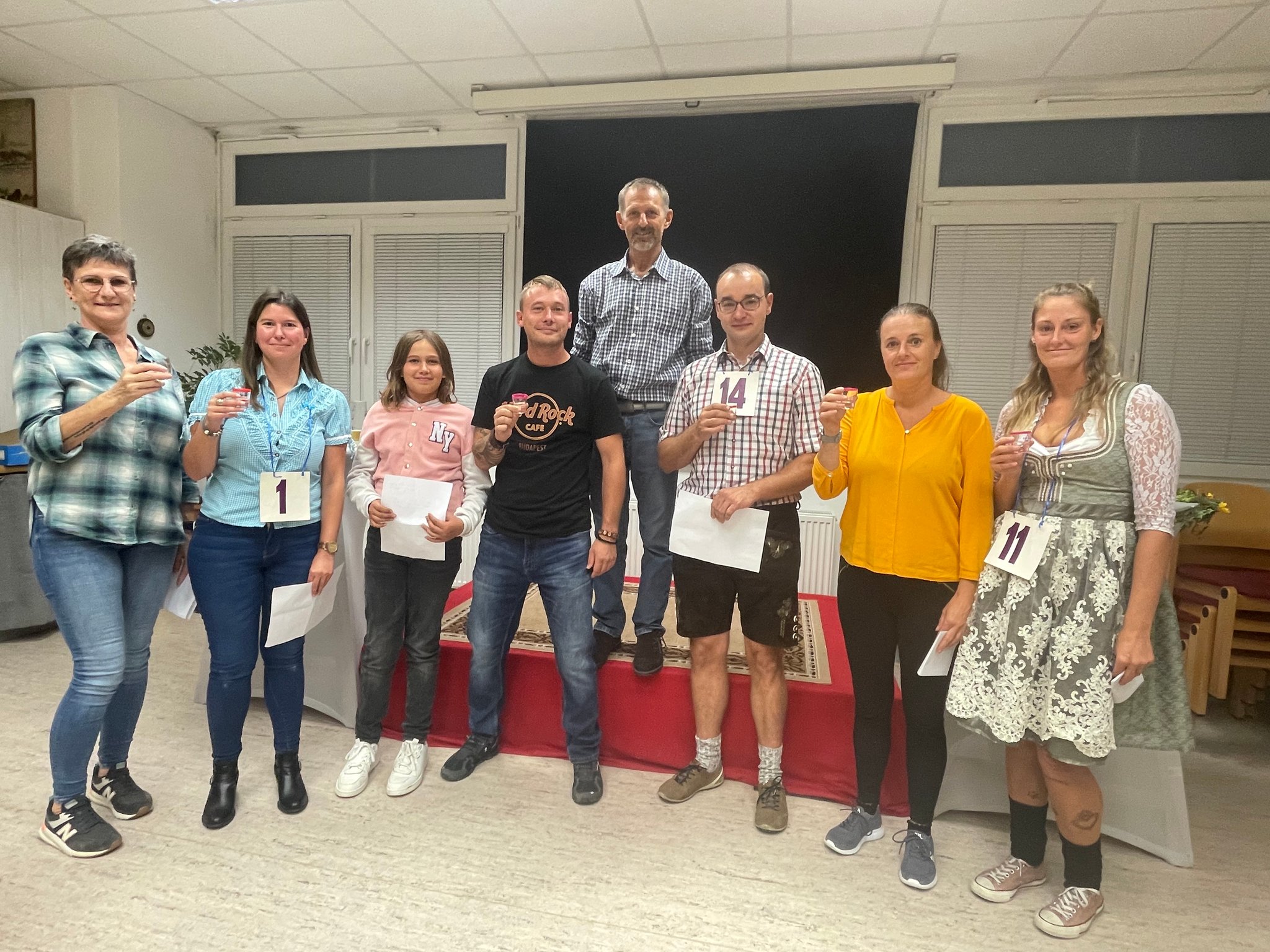 Am Samstag, dem 28. September 2024 fand unser jährliches Trachten-Herbstfest statt. Obwohl der offizielle Start erst um 15 Uhr war, konnten wir zu unserer Freude bereits gegen 14 Uhr einige Gäste begrüßen und im Laufe des Nachmittags wurden es immer mehr. Die Nachmittagsstunden wurden mit gemütlichen Gesprächen bei Kaffee und Kuchen verbracht. Obwohl wir hier zum ersten mal auch leckere Bauernkrapfen angeboten haben, welche sehr beliebt waren, konnten wir dennoch zwei ganze Blech Kuchen verkaufen, sodass diese ausverkauft wurden. Zu unserem jährlichen Herbstfest gehört auch immer ein „Schätzspiel“, bei welchem in den letzten Jahren immer das Gewicht geraten werden musste. Dies wurde auch heuer wieder durchgeführt, doch mit einer Neuerung – es mussten die Maße (Länge + Breite) des Gewinns geschätzt werden. Diese Jahr haben 52 Besucher sich viel Zeit genommen, um einen möglichst genauen Tipp abzugeben. In der Küche haben Renate Hofer und Ida Greilberger wieder sehr fleißig gekocht, damit Weißwürstel und Brezeln angeboten werden konnten. Da diese so beliebt waren, dass alle 40 Stk. Verkauft wurden, musste Franz Hofer noch einmal Einkaufen fahren und für Ersatz sorgen – es konnten dann noch Frankfurter und Toast verkauft werden. Am Abend wurde auch noch getanzt, wo Renate Hofer und Stefan Gastinger mit einer lustigen, spontanen Tanzeinlage begeistern konnten. Um 19:30 Uhr wurde das Schätzspiel aufgelöst und zwei Gäste konnten die Maße genau richtigen tippen, nämlich 65 x 45cm. Leider war Vroni Hofer nicht mehr anwesend und somit hat Maria Haselbauer den ganzen Preis alleine erhalten. Wie jedes Jahr gab es auch wieder eine Kleinigkeit für die schönsten Trachten – Katrin Jelen hat heuer als Jurorin fungiert und hat sich die Lederhosen und Dirndln von 18 Personen angesehen. Die Bewertung war schwierig, da alle Bekleidungen sehr schön aussahen, gewinnen konnte aber Matrin C. vor Gruber Vonika (die seit unglaublichen 40 Jahre immer das gleiche Dirndl präsentierte und dieses Jahr endlich eine Top-Platzierung erreichte). Die Plätze 3 und 4 erreichten Klopf Peter (ein Gast aus Linz) und Aspalter Hilda (aus Steyr). Alle Gäste in Tracht erhielten eine kleine Flasche von diversen Getränken. Danach gab es noch zwei weitere neue Spiele. Bei einem musste ein Stapel Becher möglichst schnell umgestapelt werden, sodass der oberste Becher so oft unten hineingesteckt wurde, bis der 1. Becher wieder ganz oben ist. Bei dem anderen musste ein Tischtennisball auf einem Rollmeter in ein Glas hineingleiten. Beide Spiele kamen sehr gut an. Es gab auch wieder die Möglichkeit ein schönes „Herbstbild“ mit Holzrahmen und passender Decko zu machen um eine schöne Erinnerung an den tollen Abend zu haben. Erst um ca. 1:30 Uhr wurde das gelungene Herbstfest beendet und die letzten Gäste machten sich auf den Weg nach Hause.