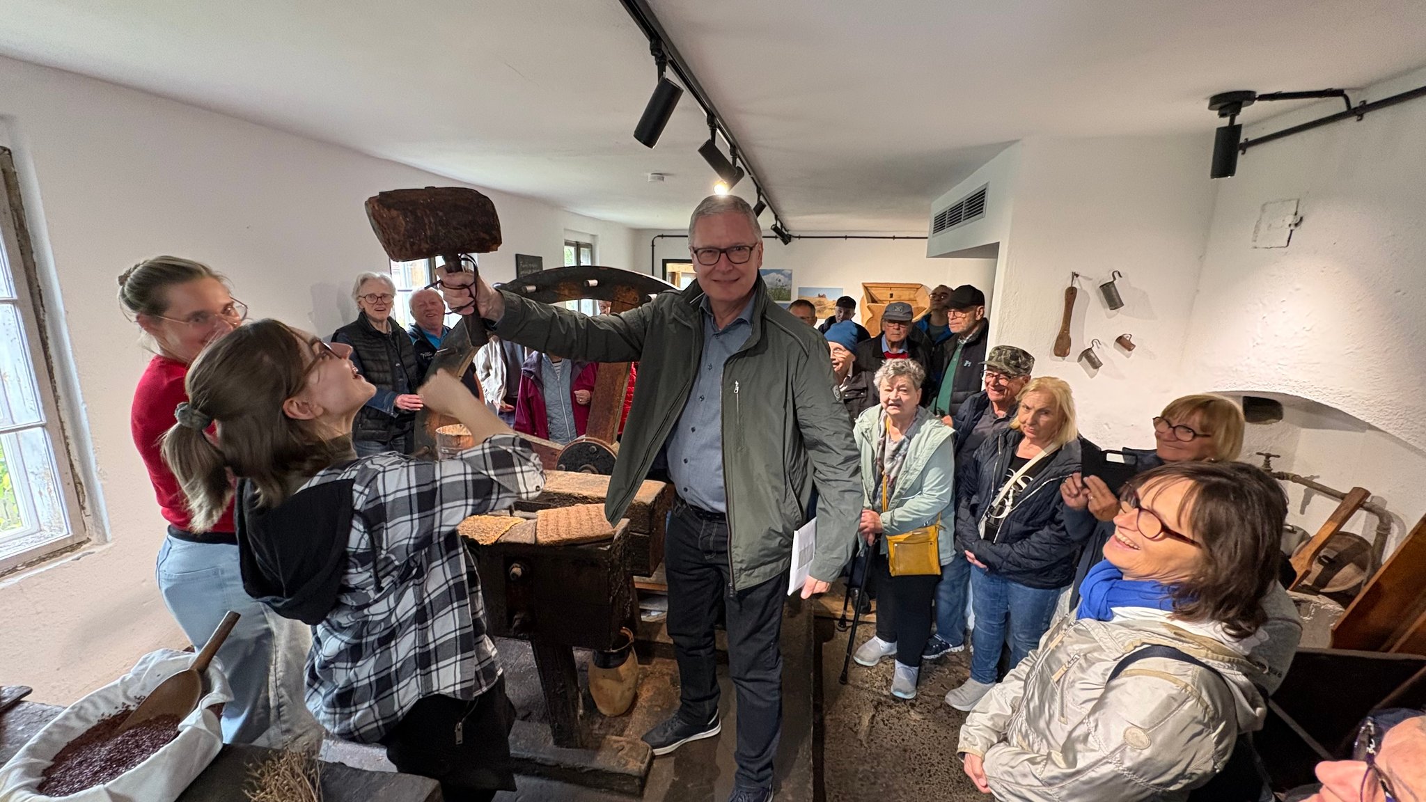Zu Mittag aßen wir im GH Vonwiller, es gab ein sehr gutes Essen. Anschließend gingen wir nach kurzerm Fußmarsch hinunter zum Leinölpressemuseum. Auch hier war es sehr interessant. Mochte mich hier auf dem Weg auch bei Alina, Tochter vom Gastinger Stefan für die Dolmetschtätigkeit, sie macht das schon sehr gut!