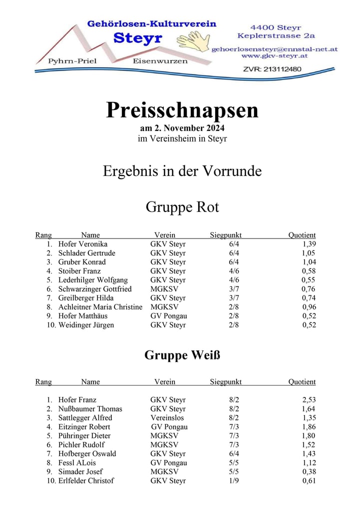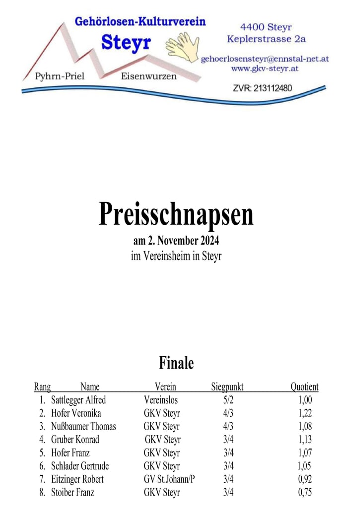 2.November 2024 -- Preisschnapsen