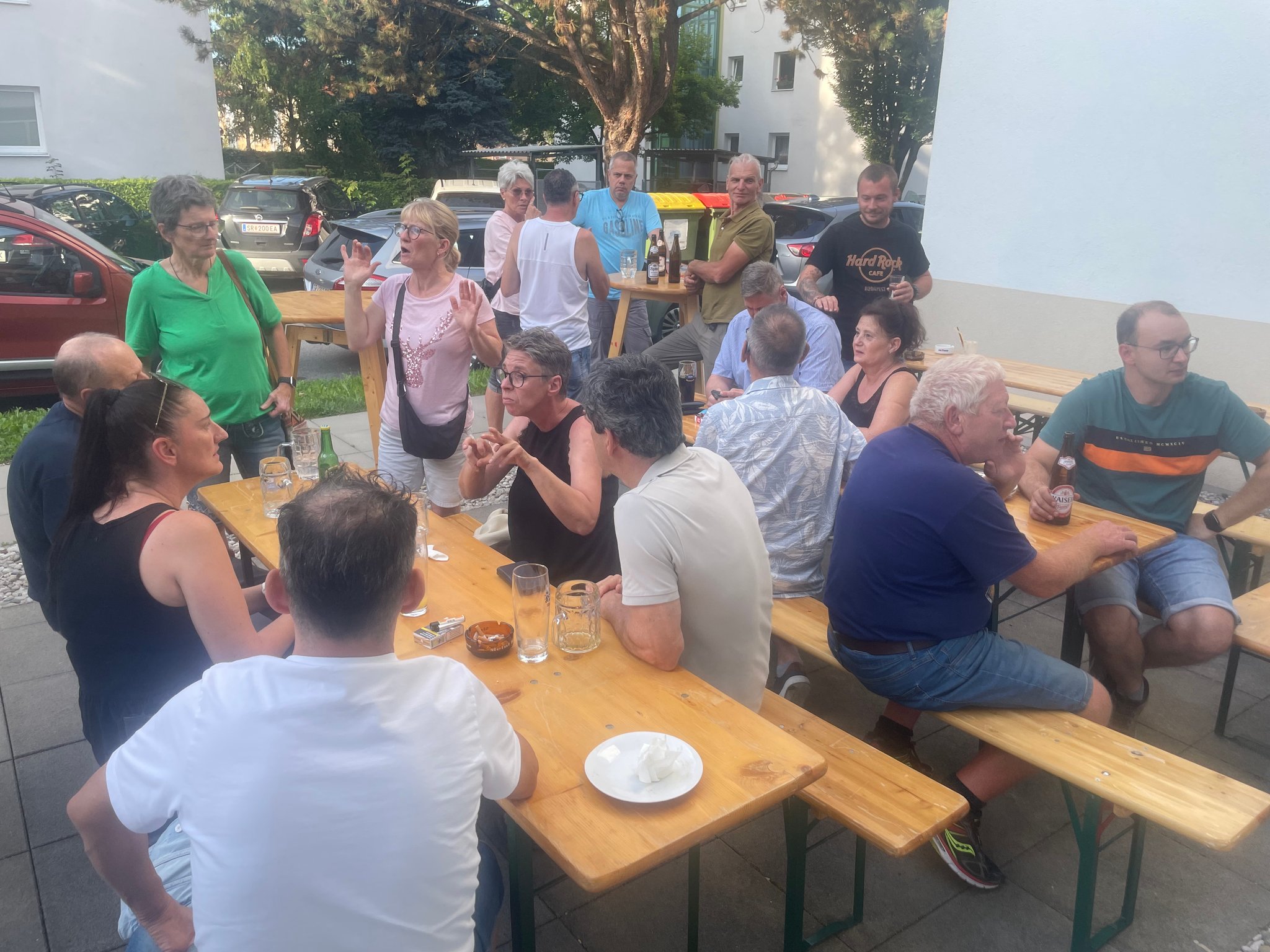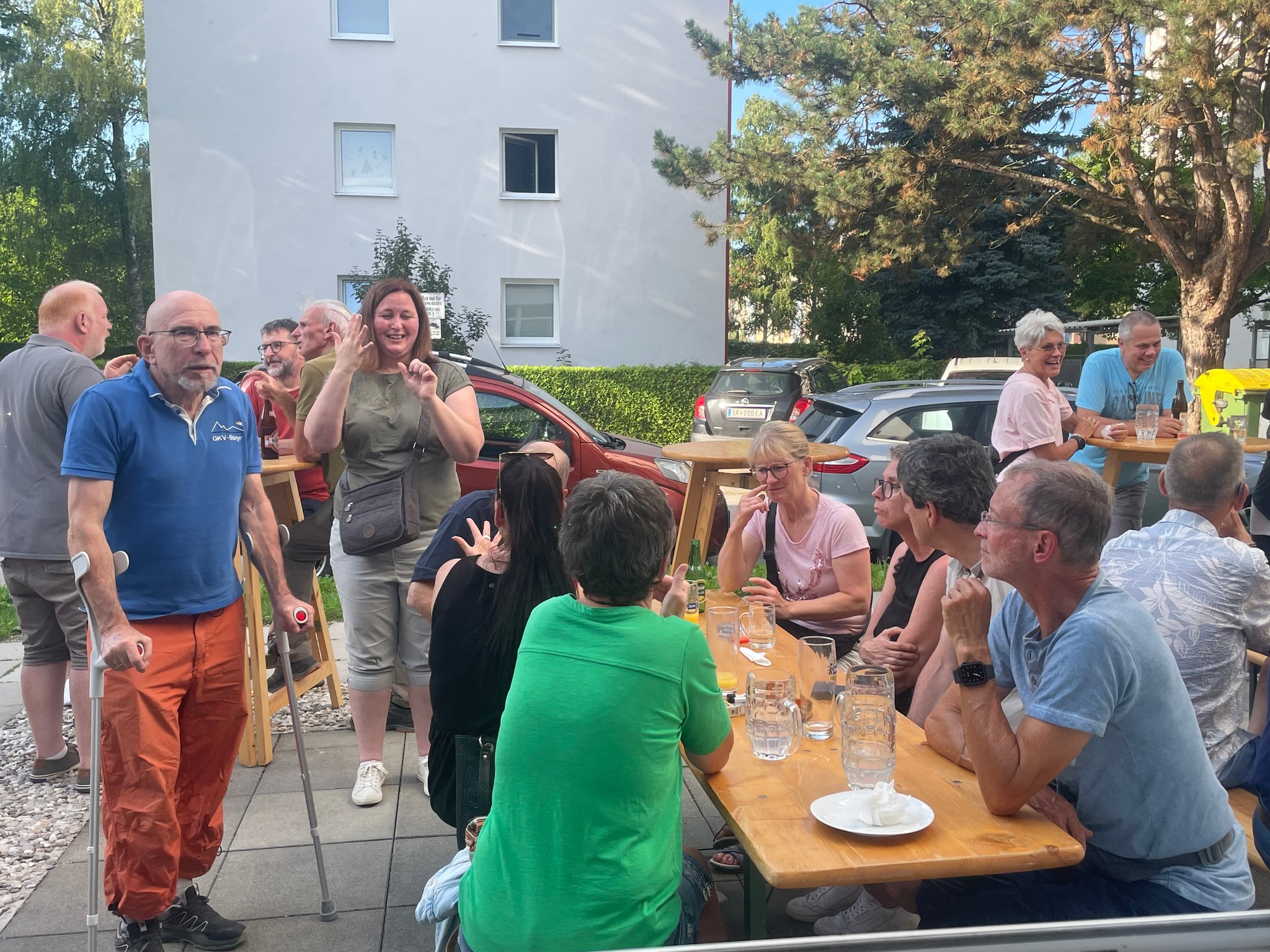 Am Samstag, dem 19. Juli 2025 kamen wie jedes Jahr sehr viele Besucher zu uns in Vereinsheim nach Steyr zum Sommer-Grillfest. Ab 14 Uhr starteten wir bei gutem Wetter mit Kaffee & Kuchen und auch neuerdings mit Eiskaffee, welcher sehr beliebt war, in die Veranstaltung. Konrad Gruber und Wolfgang Lederhilger veranstalteten zwischen 15 und 17 Uhr drei Ballwurfspiele: Dosenschießen, Wiffle Bälle und Kübelschießen. Daran nahmen 51 Gehörlose teil und die ersten sechs Plätze konnten bei der Siegerehrung am Abend einen Geldpreis gewinnen. Um 17 Uhr begann dann Franz Hofer zum Grillen und es gab Bratwürstel, Käsekrainer und Kotelett sowie Sauerkraut oder Kartoffelsalat als Beilage durch Renate Hofer in der Küche. Eine sehr positive Überraschung war der Besuch von ein paar Mitgliedern vom GKV St. Pölten inkl. Obfrau Lunzer und vom GKV Ried im Innkreis inkl. Obmann Zellinger und vom GKV Salzkammergut inkl. Obfrau Vertr.: Pixner. Bei guter Stimmung wurde noch bis etwa Mitternacht die Zeit gemeinsam verbracht.