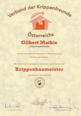 Zum ersten mal in der Geschichte schaffte es unser Mitglied Mathie Gilbert die Prüfung als Krippenbaumeister!