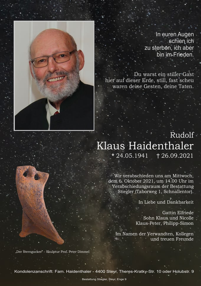 Klaus Rudolf HAIDENTHALER am Sonntagabend, den 26. September 2021 von uns gegangen ist!