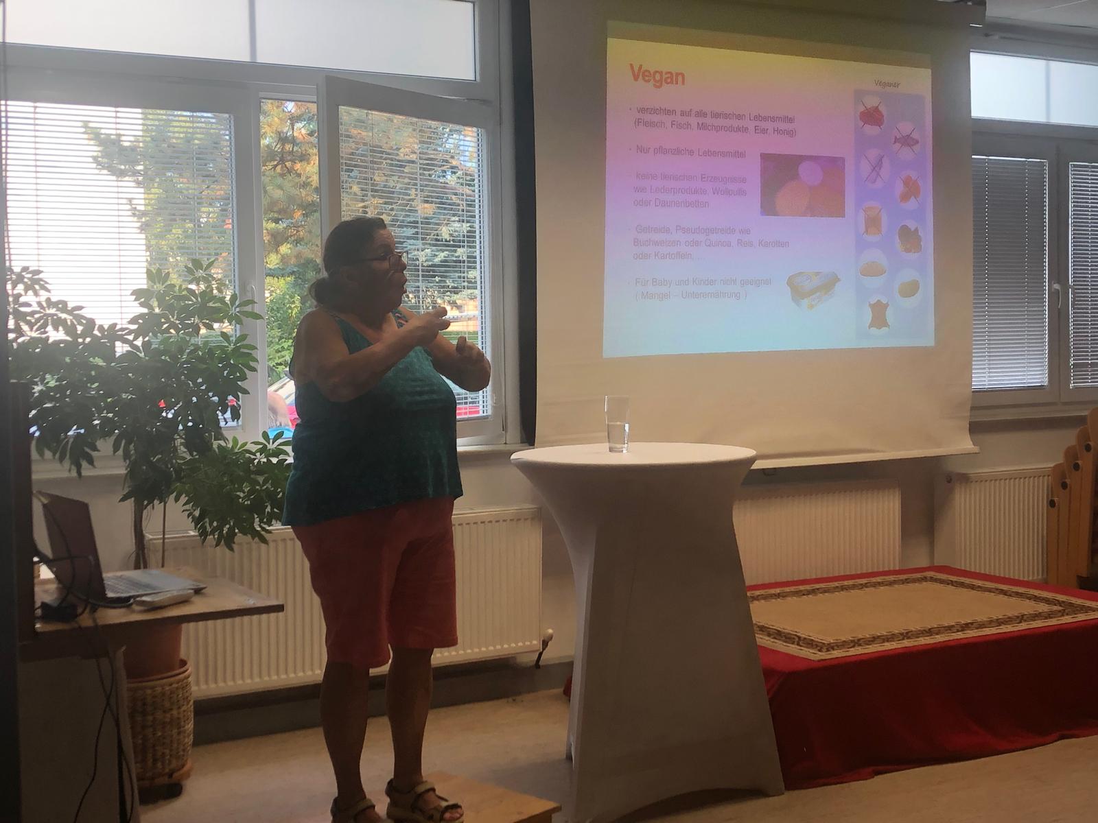 Annemarie hat einen Vortrag über Ernährung und Vegan-vegetarisch gemacht. Am Anfang erzählte sie, wie sich die Ernährung von damals bis zu vegan von heute entwickelt hat. Es gab einige, die nicht verstehen konnte was Unterschied vegan und vegetarisch ist. Zu Sicherheit wurde die Frage gestellt und nochmal aufgeklärt. Dauer ca. 1 Stunde. Danke an alle Zuschauen.