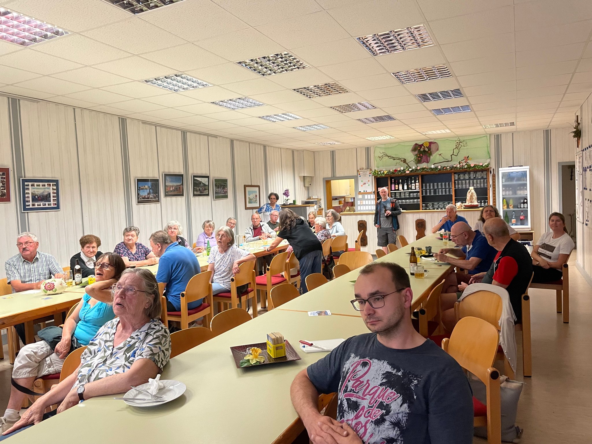 Am Donnerstag, dem 5. Juni 2025 fand im Vereinsheim bereits ab 14 Uhr ein Senioren-Treff statt. Außerdem machte Hanna Höllmüller zwischen 14:00 – 16:30 Uhr ihre Sprechstunde. Über den Nachmittag hinweg unterhielten sich die Besucher bei Kaffee und Torte, welche auch schnell ausverkauft wurde. Um 16:30 Uhr fand von Martin Gebetsberger ein halbstündiger Vortrag über Online-Betrug (E-Mail, SMS, usw.) statt, zu dem Thema gab es auch von einigen Gehörlosen noch extra Fragen. Gleich im Anschluss fand um 17 Uhr von Martin Nowak und Barbara Rittberger ein weiterer Vortrag statt – diesmal zum Thema Caritas OÖ, Hand-Werk für Gehörlose. Inhaltspunkte waren unter anderem die Vorstellung vom Caritas OÖ-Team, sowie deren Aufgaben und aktuelle Infos über Berufsausbildung und -Umschulung. Der Vortrag war sehr umfangreich und aufgrund von sehr vielen Rückfragen der Besucher dauerte er bis ca. 18:30 Uhr. Danach verbrachten viele der Gehörlosen noch den Abend bei gemütlicher Stimmung im Vereinsheim. An dem Abend wurden auch von Renate Hofer in der Küche Käsekrainer und Bratwürstel gekocht, welche gut ankamen und restlos verkauft wurden.