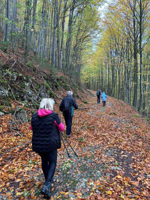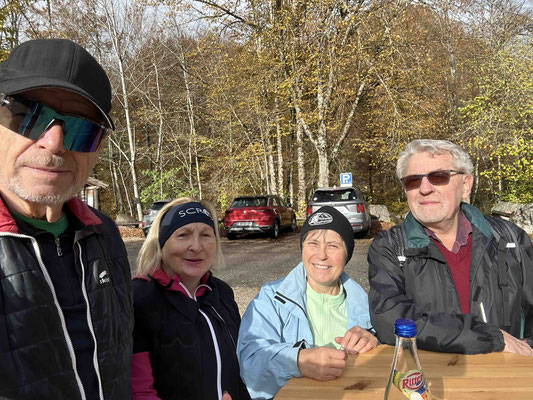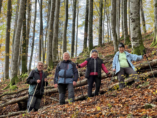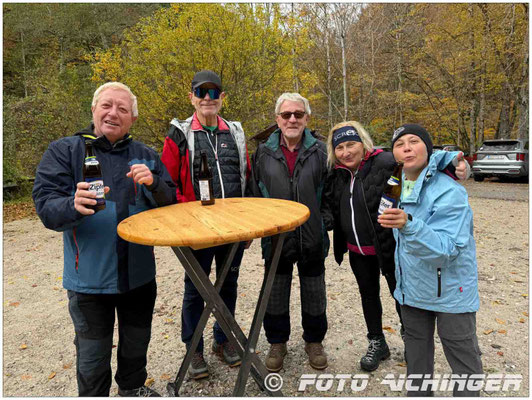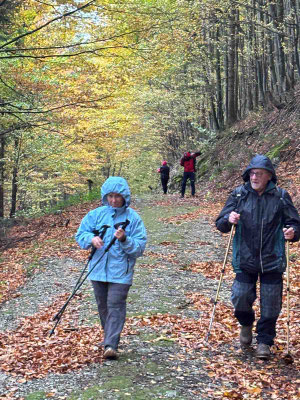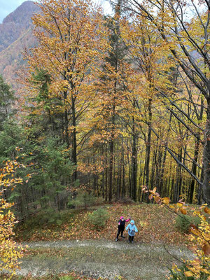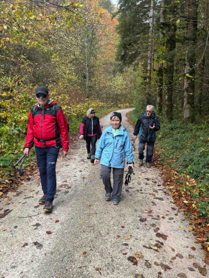 Am Morgen kamen wir mit dem Auto stückweise von Reichraming zum Parkplatz Weißenbach, von wo wir aufbrechen wollten. Sehr steiler Aufstieg über den laubbedeckten Steig im Buchenwald zum höchsten Punkt der Wanderrunde „Im Tal des Holzes“. Sanfter Abstieg unter dem Regenhimmel über die Forststrasse vorbei an der Bergerwieshütte im Weißenbachtal zum Parkplatz, wo sich die Labstelle befand. Anschließend gab es pikantes Essen Hirschragout im Feuerwehrhaus. Reine Wanderzeit 1½ Std. 👍